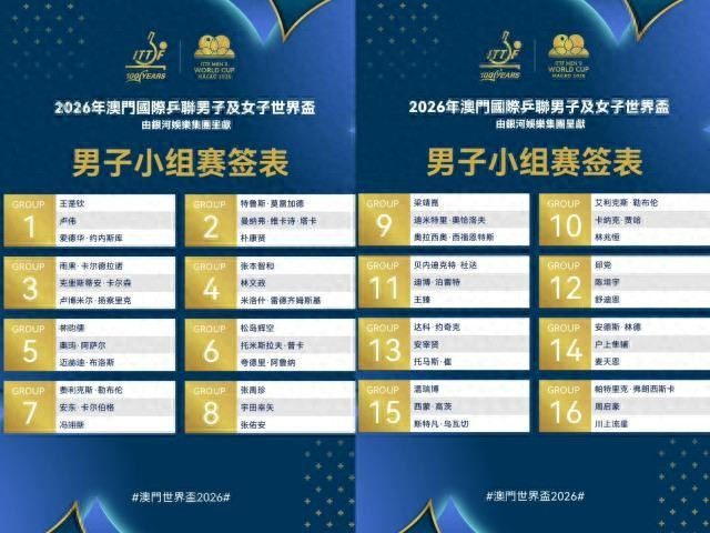 中国选手之外,卫冕冠军巴西名将卡尔德拉诺位于第3组,世界排名第二的莫雷加德、世界排名第四的张本智和分列第2和第4组,本届世界杯对于中国男乒来说,将是一次最为严苛和残酷的考验。